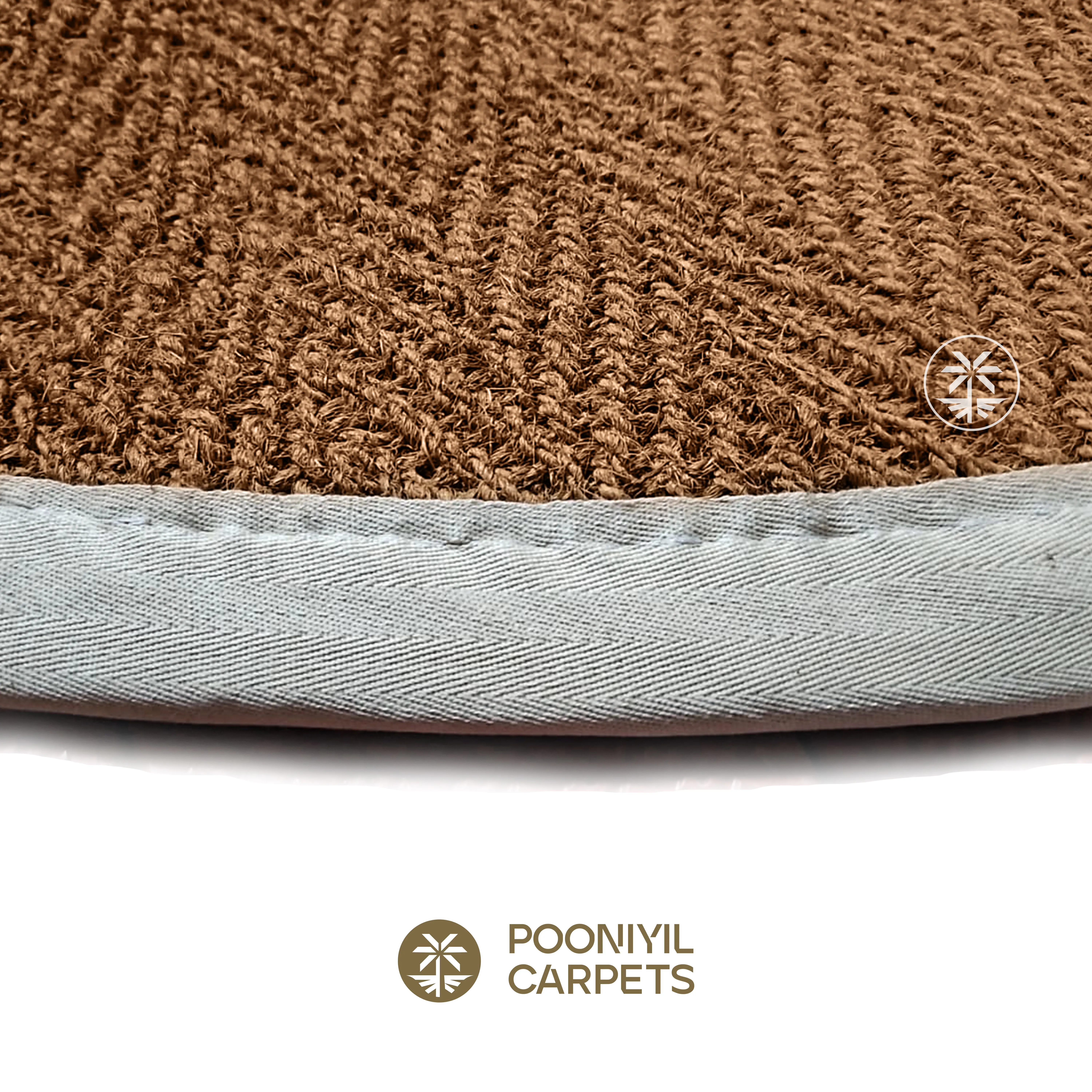 Coir mattings can be converted to rug sizes which includes all weave patterns described above. Colours and patterns can customised as per customer demand. Ends tucked, fringed or cotton webbing.