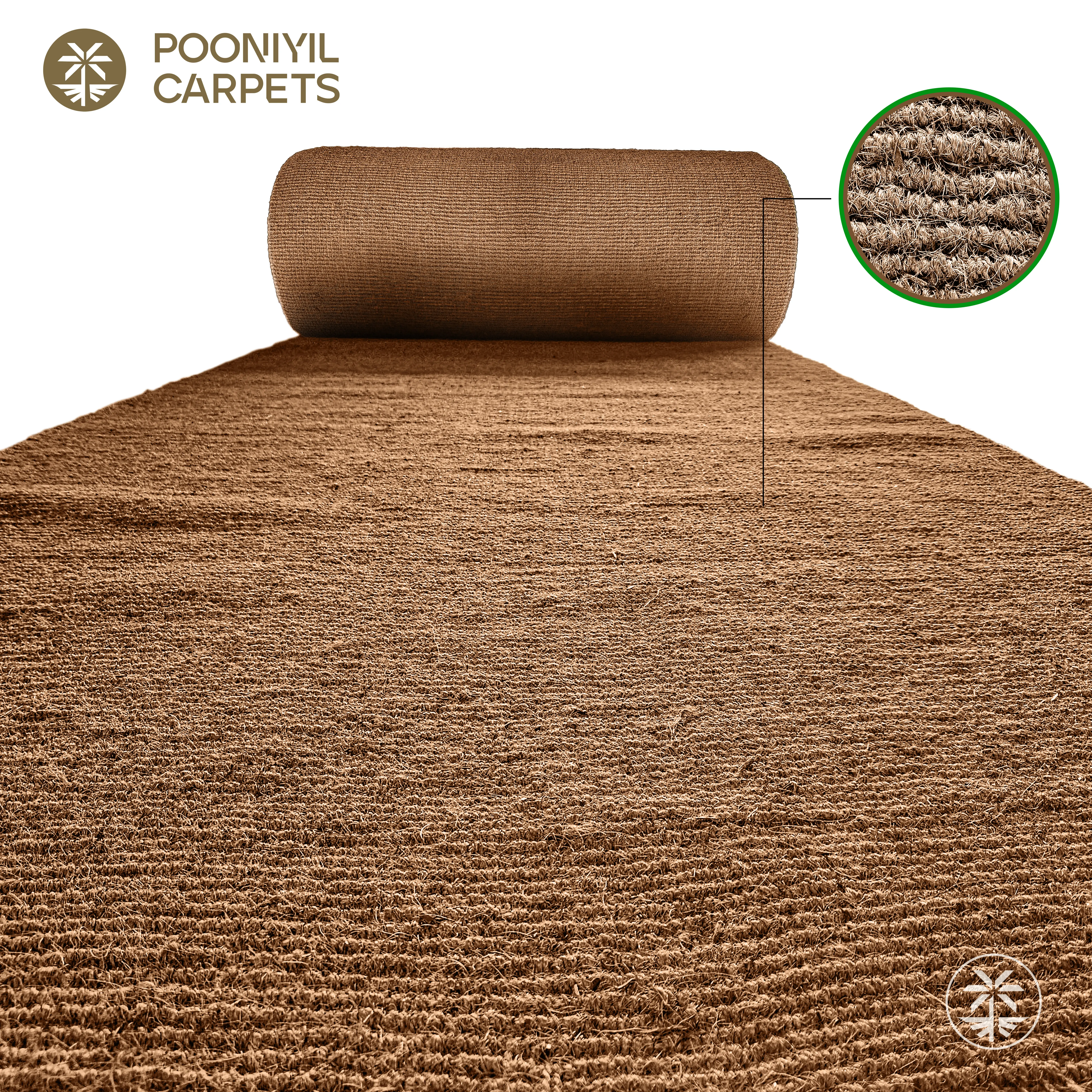 Product coir mattings used as floor coverings, floor runner wall panelling, ceiling and even used for final filtrations of edible and non-edible oils. Available sizes are 25 meter, 30 meter, and 50 meter.